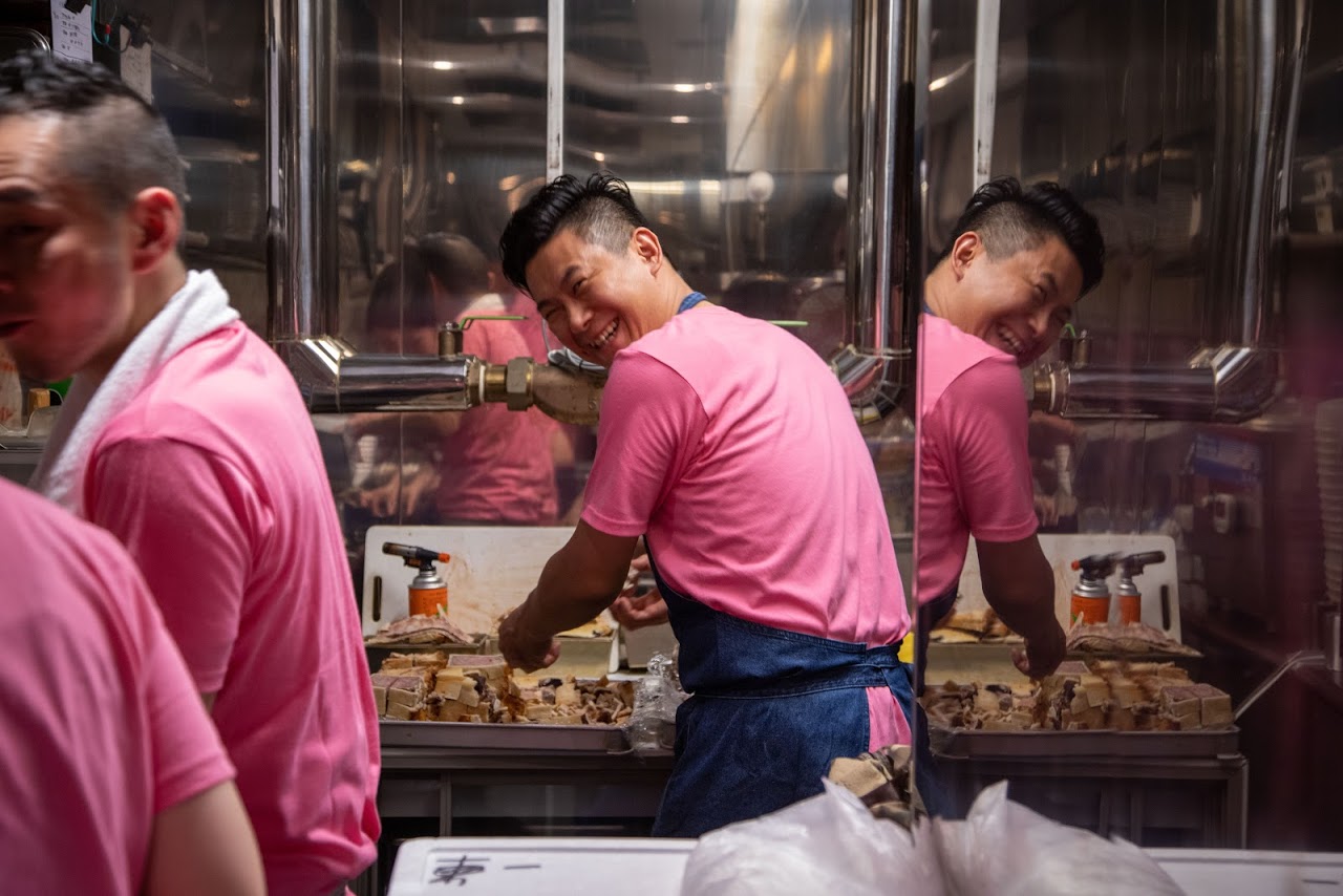 成蔵さんの揚げに群がる料理人たち