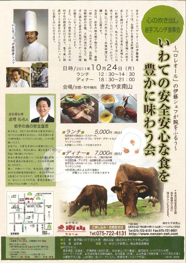 その伊藤シェフが、10月24日にきたやま南山で腕を振るうことになった。