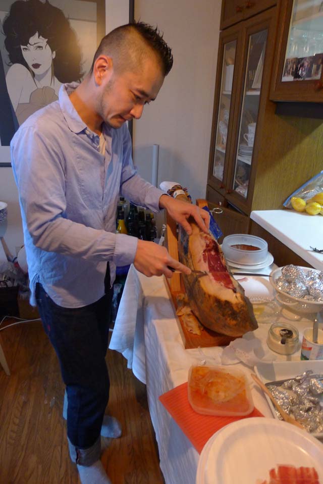 肉が焼けるまで、ハモンイベリコベジョータを切り分けてもらった。