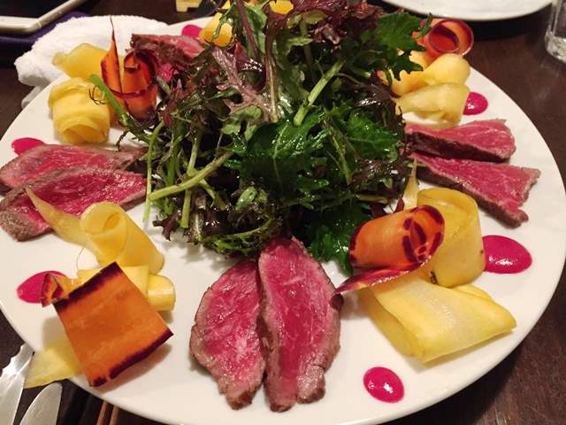 牛の命をいただくということは殺生であり、食べるということは供養です。捉え方というか考え方は人それぞれですが私はこのように思い考えながら仕事をしています。命がどうのこうのと軽々しく言ってしまうと、場合によっては安っぽく聞こえるかも知れません。でも私は生産者から預かった牛を肉にすることが生業であり、そこに強いメッセージを持たなければただの金儲けになってしまうのです。殺生と供養は相反するものですが、肉になってくれた牛の背景を語ることは私にとっての役割であり、それを皿の上で表現するのが料理人だと思うのです。