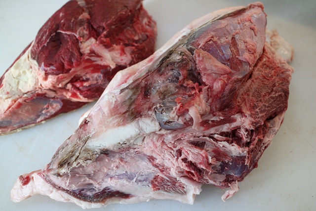 ジビーフを焼肉用にカットしてみました。ほんとうに鹿肉と間違えそうですね。それにしてもきれいな赤身です。
