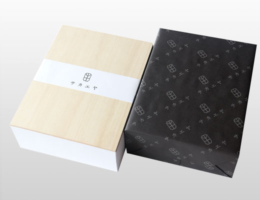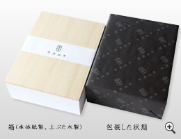 ・本体紙製、上ぶた木製の箱の上から包装紙で包装し、お届けいたします。